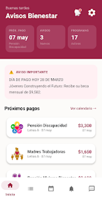 Avisos Bienestar is een Android-applicatie die gebruikers helpt bij het raadplegen van betalingen en informatie over verschillende sociale programma's in Mexico. De app biedt een overzicht van 18 verschillende programma's, waaronder pensioenen en beurzen, met gedetailleerde informatie en officiële bronnen. Gebruikers kunnen eenvoudig de data voor betalingen opzoeken op basis van de beginletter van hun achternaam, en ontvangen meldingen over nieuwe kalenders en relevante nieuwsitems.